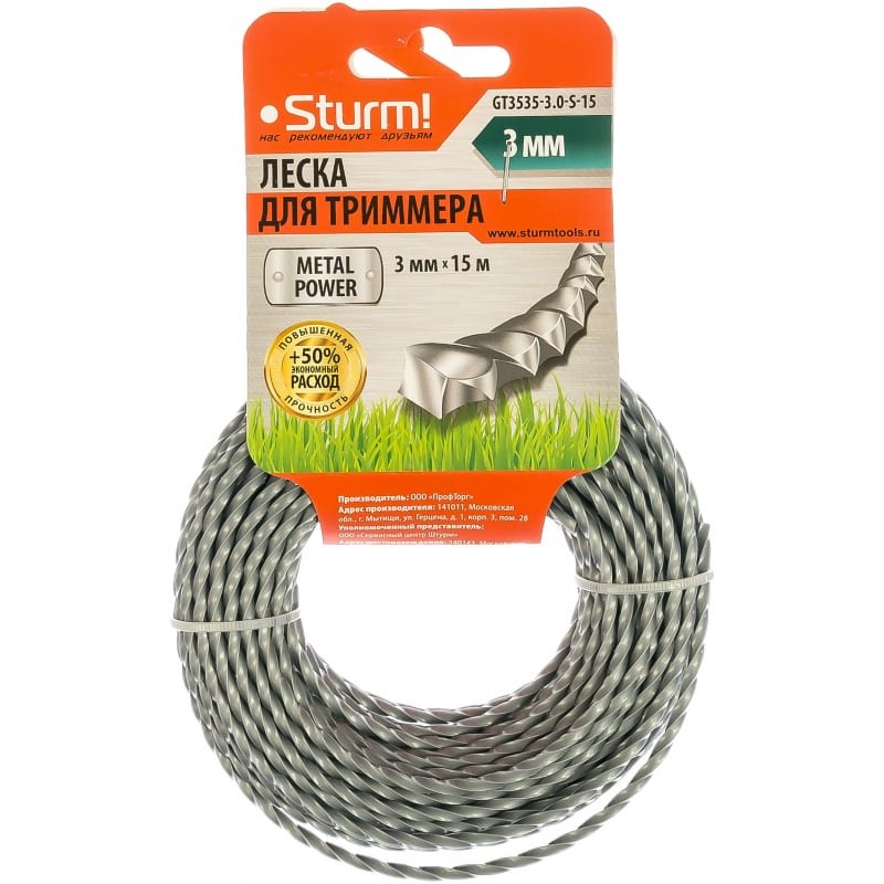 —BGT3535-3.0-SA-15 Леска для триммера, d=3.0 мм, l=15 м, КРУЧЕНЫЙ КВАДРАТ, армиров. блистер, Sturm!