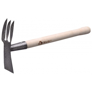 Рабочая часть является двусторонней и произведена из качественной инструментальной стали, которая состоит из грабелек с тремя зубьями и лопатки для упрощения работы с грунтом. Мотыжка ЗУБР садовая комбинированная изготовлена из высшего сорта древесины, что делает работу комфортной и увеличивает срок использования инструмента. Это универсальный инструмент для аэрирования, прополки почвы, для сбора мусора, а также для разнообразных работ по грунту.