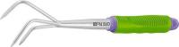 Рыхлитель 3-зубый с обрезиненной рукояткой, которую при необходимости можно удлинить. Ширина рабочей части 75 мм, общая длина 340 мм. Предназначена для рыхления и аэрации почвы на небольших грядках и клумбах. Рабочая часть выполнена из инструментальной стали У8 и окрашена порошковой эмалью для предохранения от коррозии. Рукоятка выполнена из обрезиненного пластика, в торце рукоятки имеется винтовая заглушка, выкрутив которую можно удлинить инструмент на 500 мм при помощи штанги 63016 и на 800 мм при помощи штанги 63017. По окончании работы необходимо очистить рабочую часть инструмента от остатков грунта.
