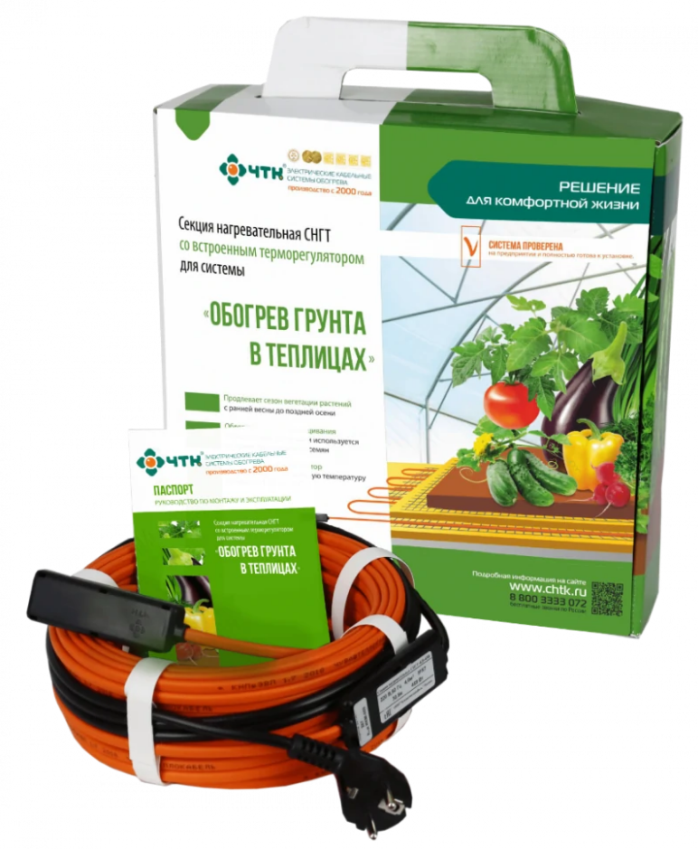 Секция нагревательная СНГТ со встроенным терморегулятором применяется в системах обогрева грунта, в том числе, в теплицах и парниках для получения раннего урожая и продления сезона роста растений с ранней весны до поздней осени.