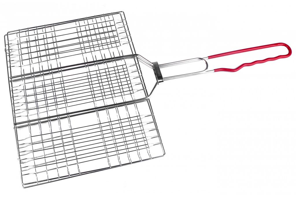 Гриль-решетка - металлическая конструкция, выполняемая из высокопрочной экологически чистой стали. Гриль-решетку можно использовать как на открытом огне, так и в камине. Неоспоримое преимущество перед шампурами в том, что продукцию можно готовить порционно, будь то: антрекоты, эскалопы, колбаски, птичьи крылышки и ножки, овощи и т.д. Деревянная и латексная ручка дает возможность, не опасаясь ожогов, переворачивать решетку. Антипригарное покрытие избавит Вас от проблем, связанных с чисткойповерхности решетки.Как пользоваться:Подготовленный продукт выкладывают на одно из полотен решетки, другимплотно прикрывают и фиксируют крепежным кольцом. Затем располагаютрешетку, к примеру, на стенках мангала, в котором находится тлеющий угль. Изумительное блюдо и глоток волшебного вина - это еще один сказочныйдень в Вашей жизни.