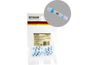 Термоусадочные коннекторы STEKKER LD302-15-25, длина 40мм. 10шт. в наборе, цвет: прозрачный, голубой. Коэффициент усадки 2:1, диапазон рабочих температур -10..+35°C, температура усадки +85..+125°C, номинальный ток 27А, для проводов сечением мм2.