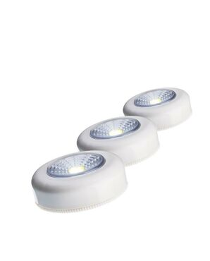 Самоклеящийся фонарь подсветка КОСМОС комплект из 3 штук 1Вт COBLED/3xAAA/ABS-пластик/ KOC304B светит широким светом - освещает пространство с одной стороны. Яркий COB-светодиод позволяет создать достаточно эффективную подсветку в шкафу или на кухне. Источник питания: 3xAAA (в комплект не входят).