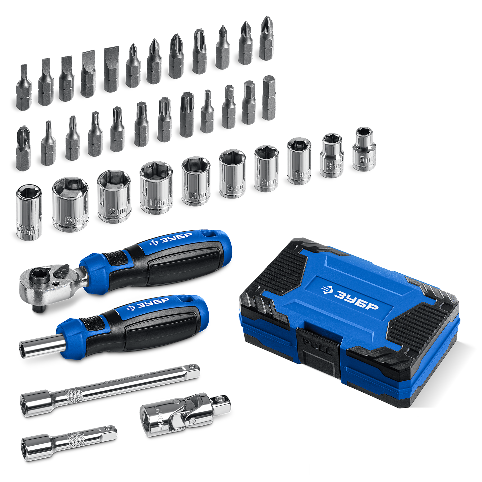 Профессиональный набор с мощной двухсторонней трещоткой для различных слесарно-монтажных работ. Для монтажа и демонтажа резьбовых соединений.