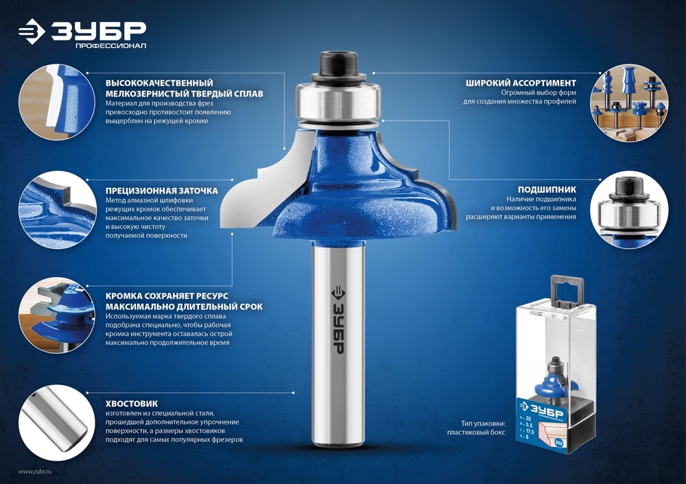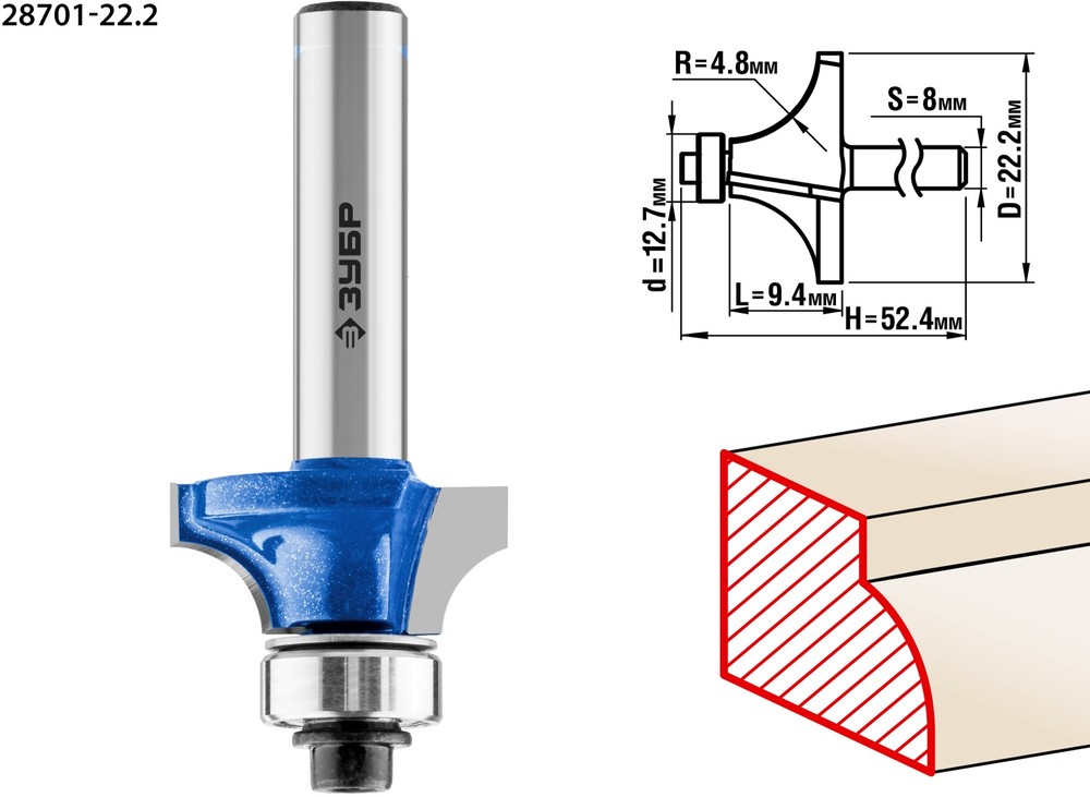 Преимущества кромочной калевочной фрезы ЗУБР 28701-22.2: