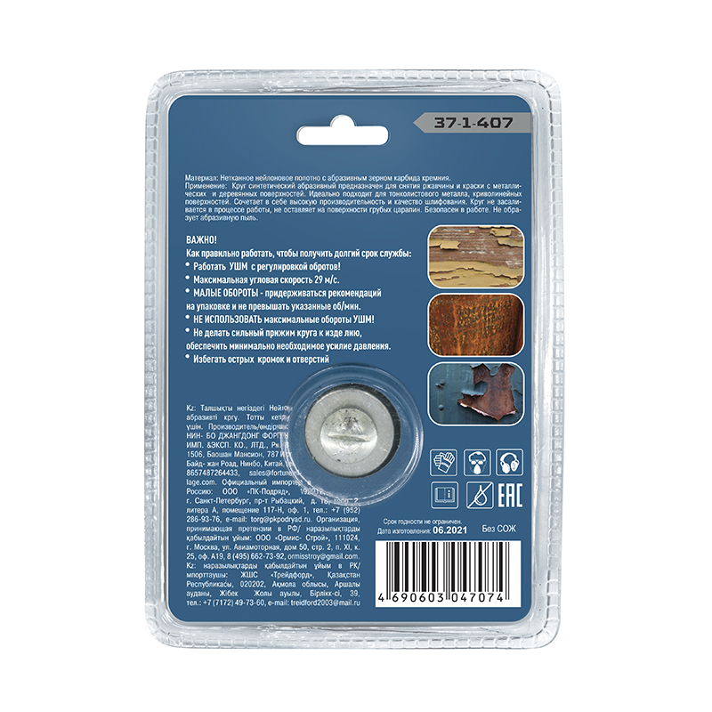 Материал: нетканое нейлоновое полотно с абразивным зерном карбида кремния, фибровая основа.