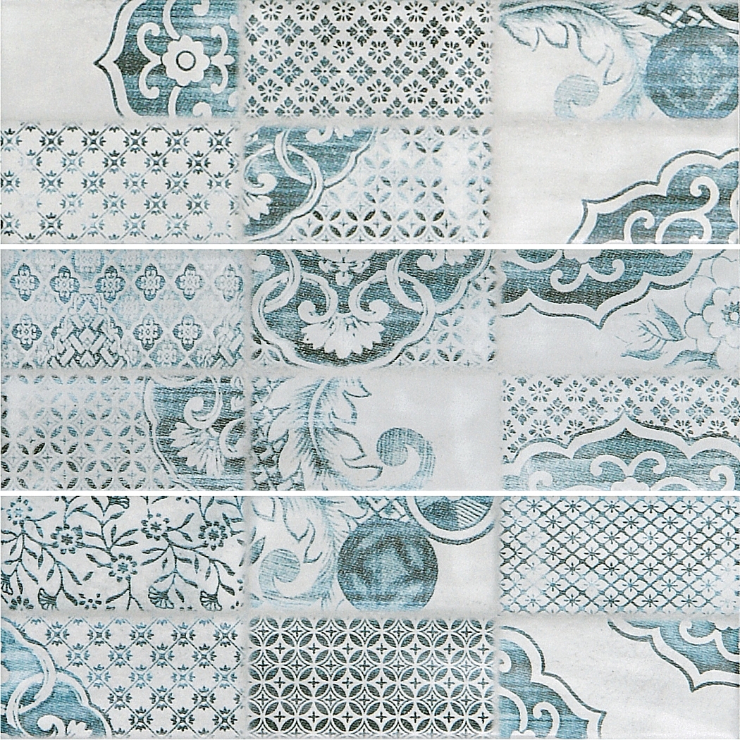 Особенность коллекции Caspian – в бирюзовом оттенке, который представлен в нескольких тональностях: от насыщенного темного до бледно-голубого в сочетании со светло-серой основой. Декоративная вставка включает в себя три фрагмента, каждый из которых имеет уникальный рисунок.