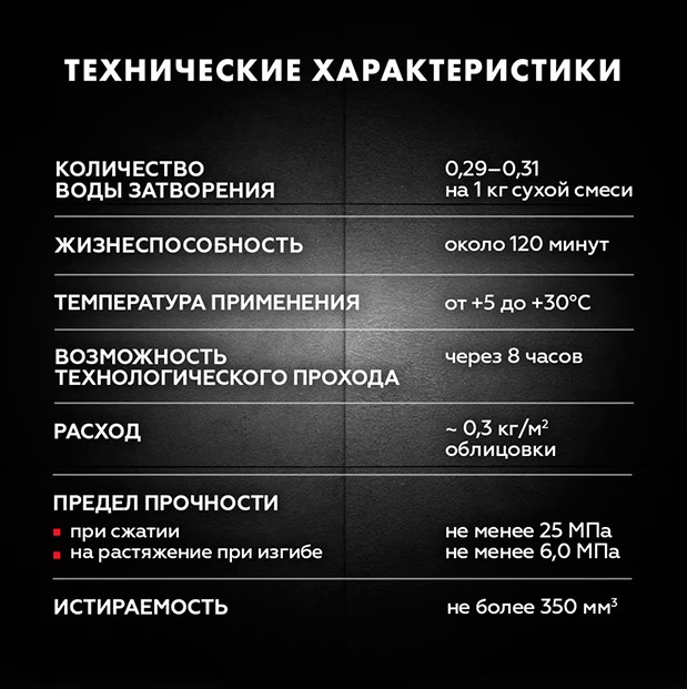 5. Строго придерживайтесь рекомендуемого количества воды затворения. Используйте чистую воду, не содержащую примесей, способных повлиять на цвет затирки, с температурой от +15 до +20°C.
