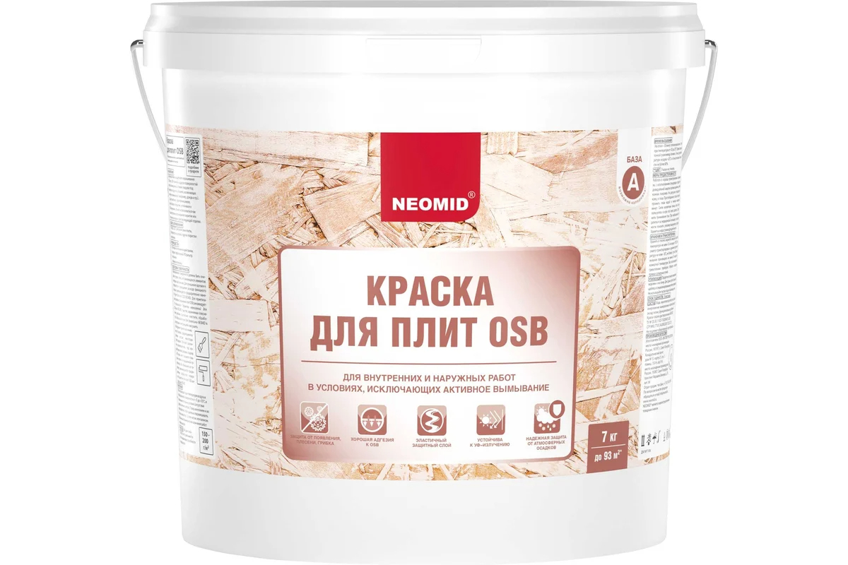 Краска для плит OSB Neomid для внутренних и наружных работ предназначена для декоративного окрашивания деревянных поверхностей (фибролитовые и OSB-плиты, ДВН, ДСП, SIP-панели) внутри и снаружи зданий.