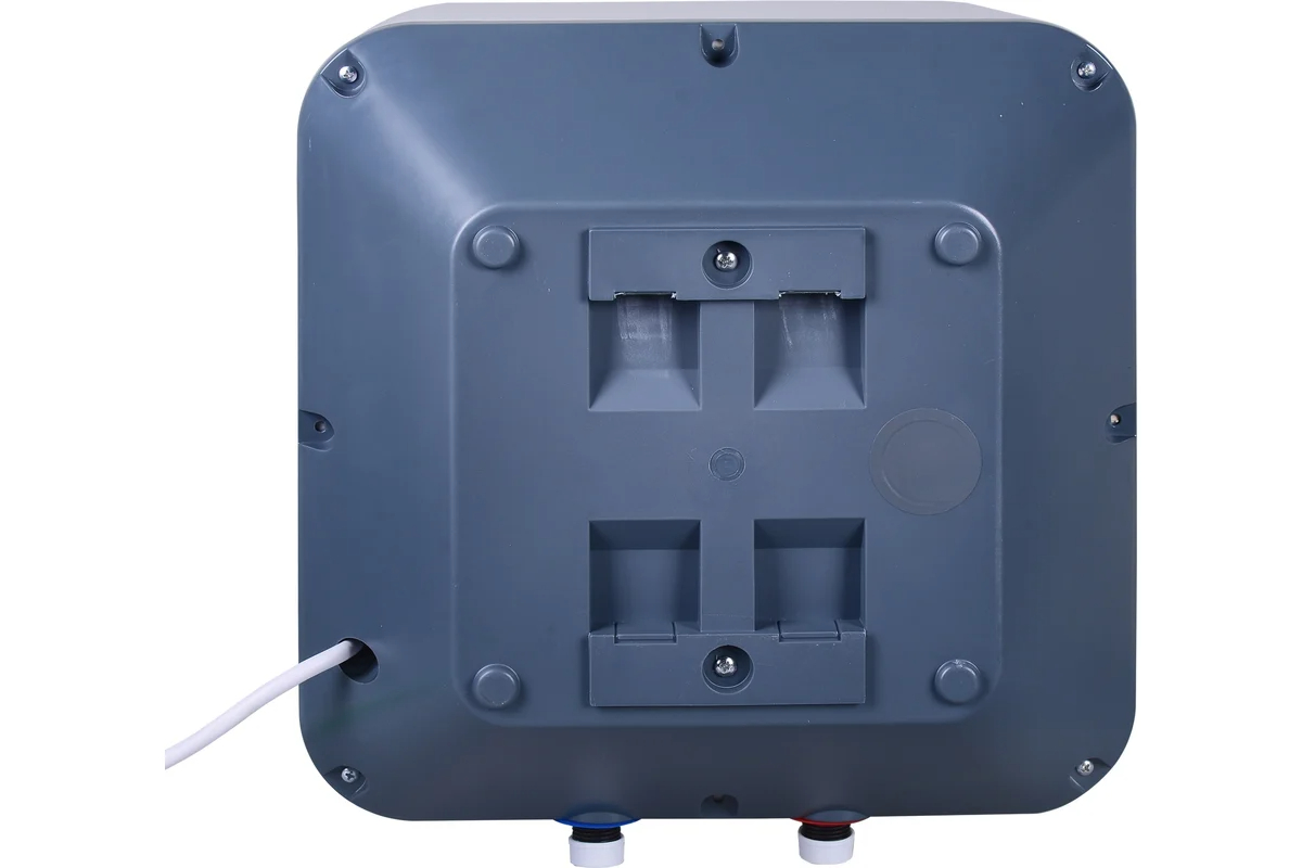 Стальной бак покрыт эмалью для предотвращения коррозии металла. Магниевый анод обеспечивает химическую защиту от солей железа. Максимальная мощность водонагревателя достигает 1500 Вт. Переключатель температурного режима позволяет задать диапазон от 30 до 75°C. При нагреве воды выше 95°C срабатывает защита от перегрева, отключающая ТЭН. О состоянии прибора сообщают индикаторы подключения к сети и нагрева, расположенные на панели управления.