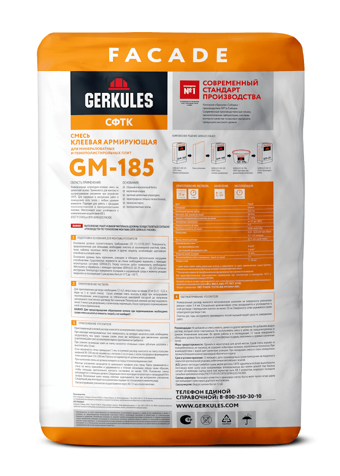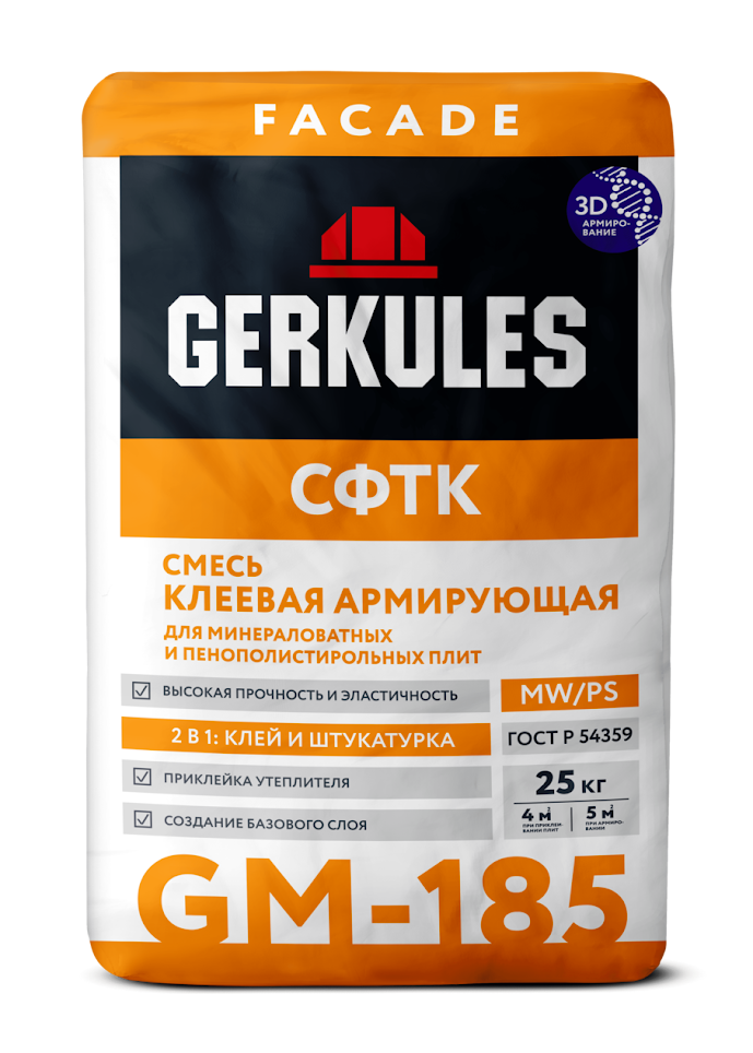 Клей отличается высокой адгезией к минеральным и полимерным основаниям, эластичен, морозо- и водостоек, имеет очень незначительную усадку и высокую паропроницаемость, повышенные показатели прочности. Обеспечивает класс устойчивости к климатическим воздействиям КВ 1 (ГОСТ 55943-2018) в СФТК GERKULES FACADE MW и GERKULES FACADE PS.