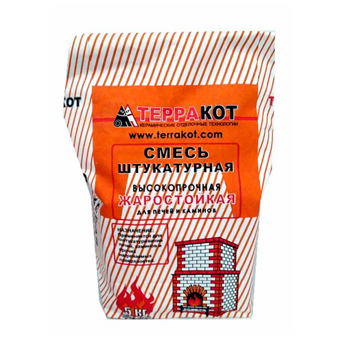 Жаростойкая высокопрочная штукатурка «Терракот» применяется для выравнивания и оштукатуривания печей, каминов, печей-барбекю, мангальных зон и прочих нагреваемых поверхностей.