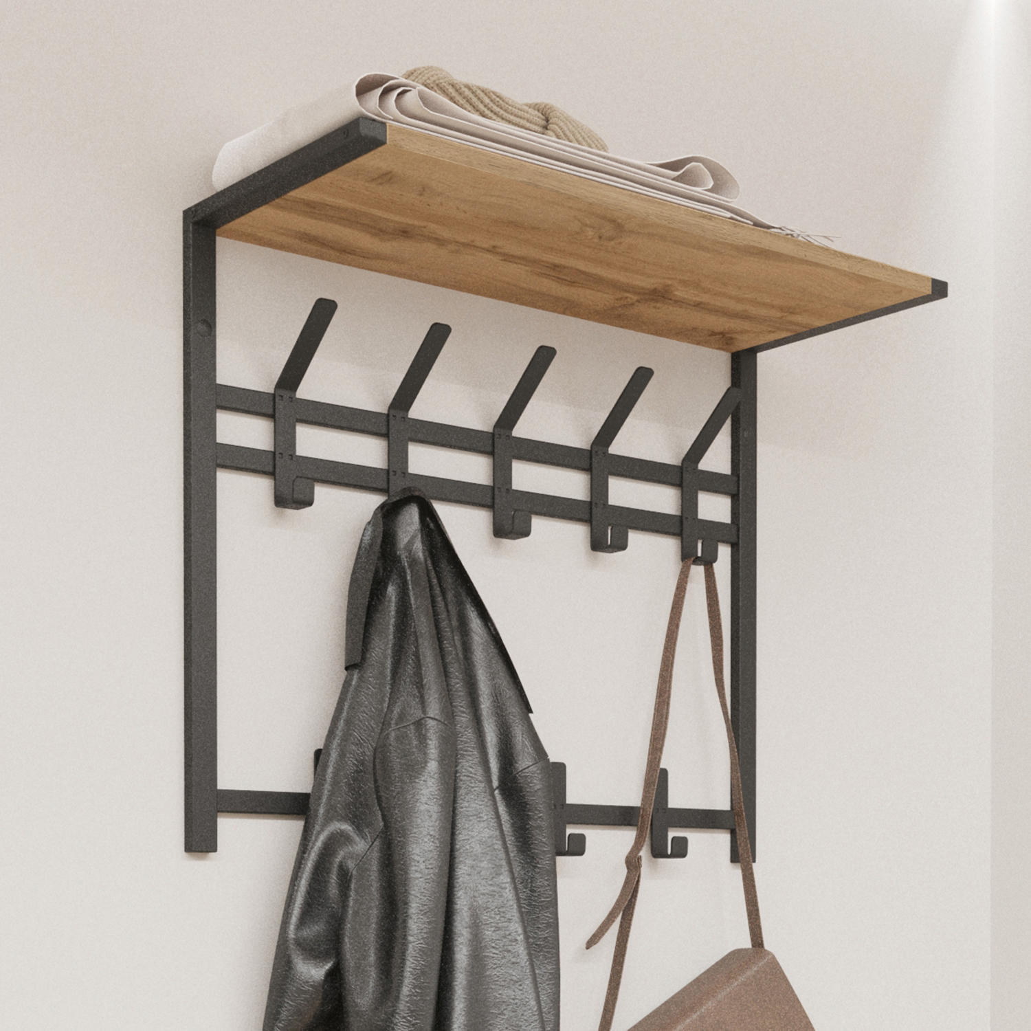 Настенная вешалка с полкой в стиле лофт Торонто 22Д идеально подходит для организации пространства в вашем коридоре или гардеробной.