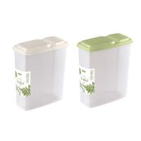 Новая емкость предназначена для хранения сыпучих продуктов: макарон, круп, бобовых, сухих завтраков, хлопьев, орехов, сахара, муки и т.д. Откидная часть крышки фиксируется в открытом положении до характерного щелчка. Прямоугольная форма позволяет оптимально расположить емкости на полке. Емкости хорошо штабелируются.