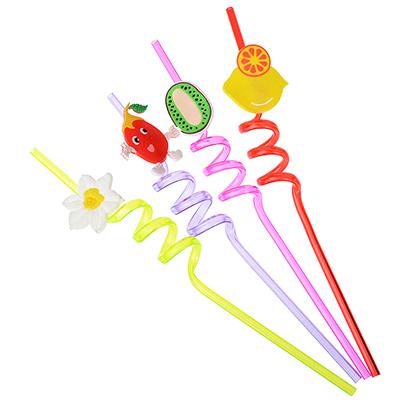 Трубочки для напитков 4шт, 260х5мм, "Фрукты-Крэйзи", цветные (437-028)