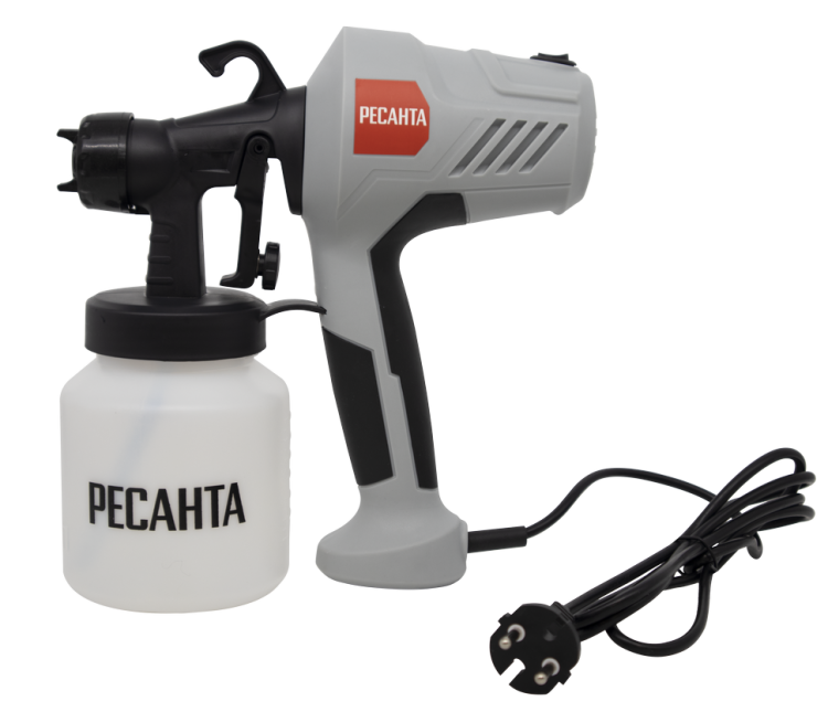 Краскопульт Ресанта ЭКП-400 производительностью 0,7 л/мин и мощностью 400 Вт, с бачком объемом 800 мл упростит нанесение любого лакокрасочного материала на небольшую по площади поверхность.