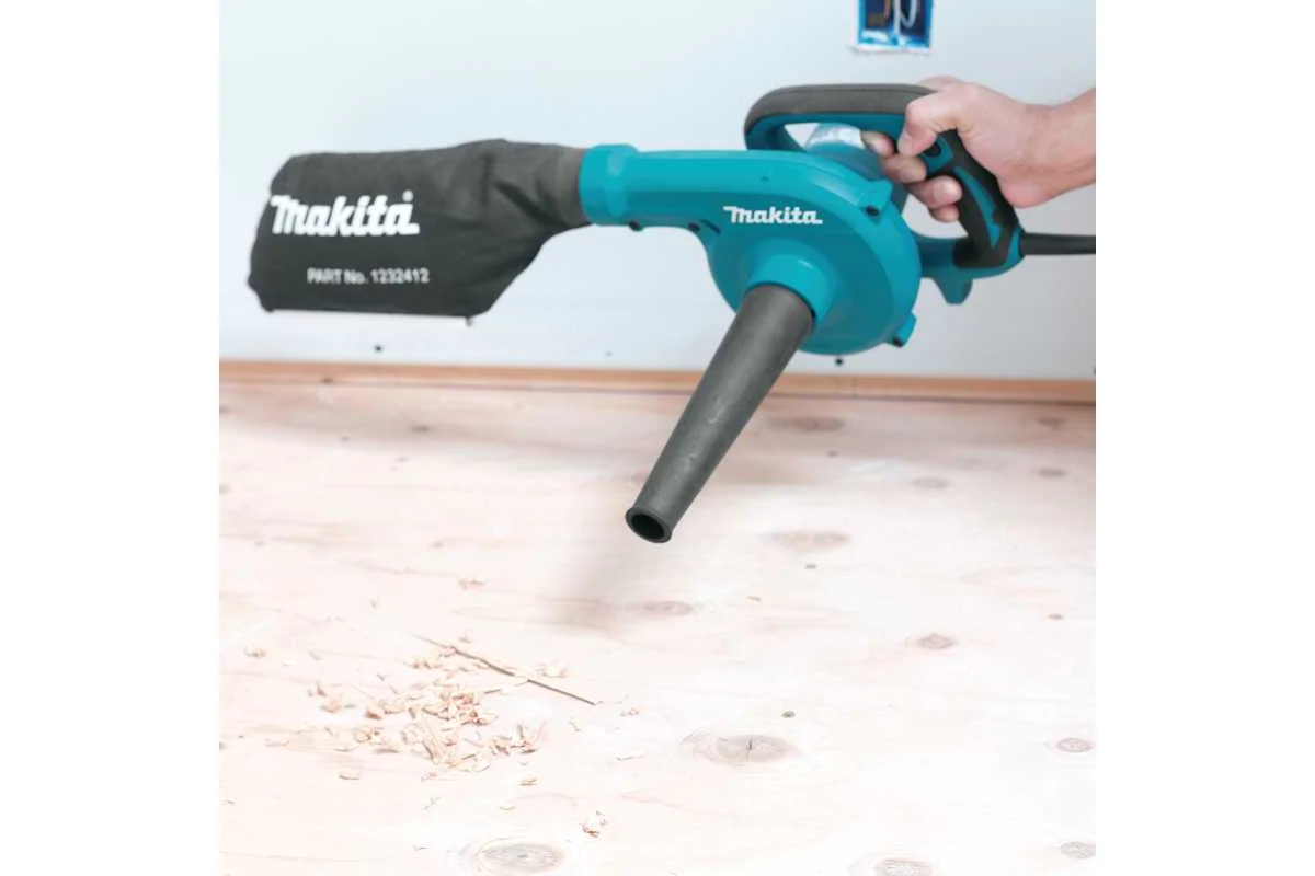 Электрический воздуходув-пылесос Makita UB1103 – станет идеальным помощником для поддержания порядка на рабочей зоне, продувки серверных или компьютеров, или раздувания мангала. Если снять резиновый патрубок и установить мешок (объем 2 л), то она сможет собирать мусор, как пылесос. Прорезиненная рукоятка обеспечивает комфортный и надежный хват. Плавная регулировка скорости позволит выбрать оптимальный поток воздуха при работе с инструментом. В комплект входит резиновый концентратор и мешок для мусора.