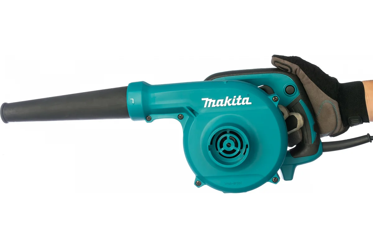 - Длительная уборка - У электрической воздуходувки Makita UB1103 есть кнопка фиксирования включенного состояния, это увеличивает удобство работы.