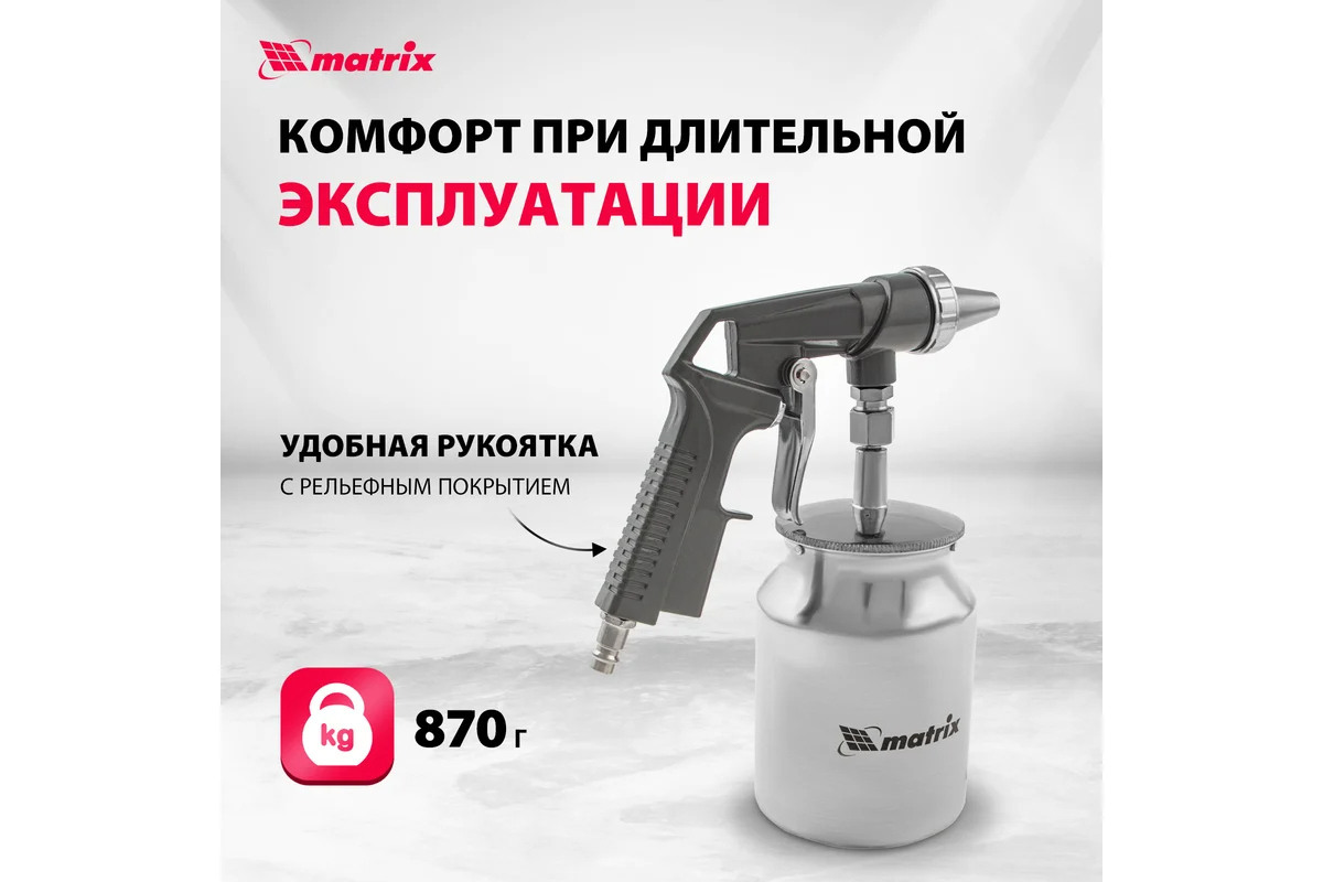 Надежность - корпус пескоструйного пистолета с нижним бачком MATRIX 57326 изготовлен из металла, что обеспечивает ему отличную надежность.