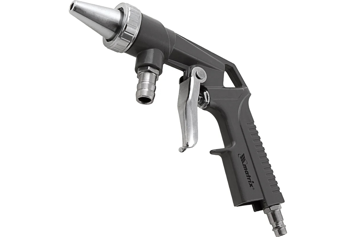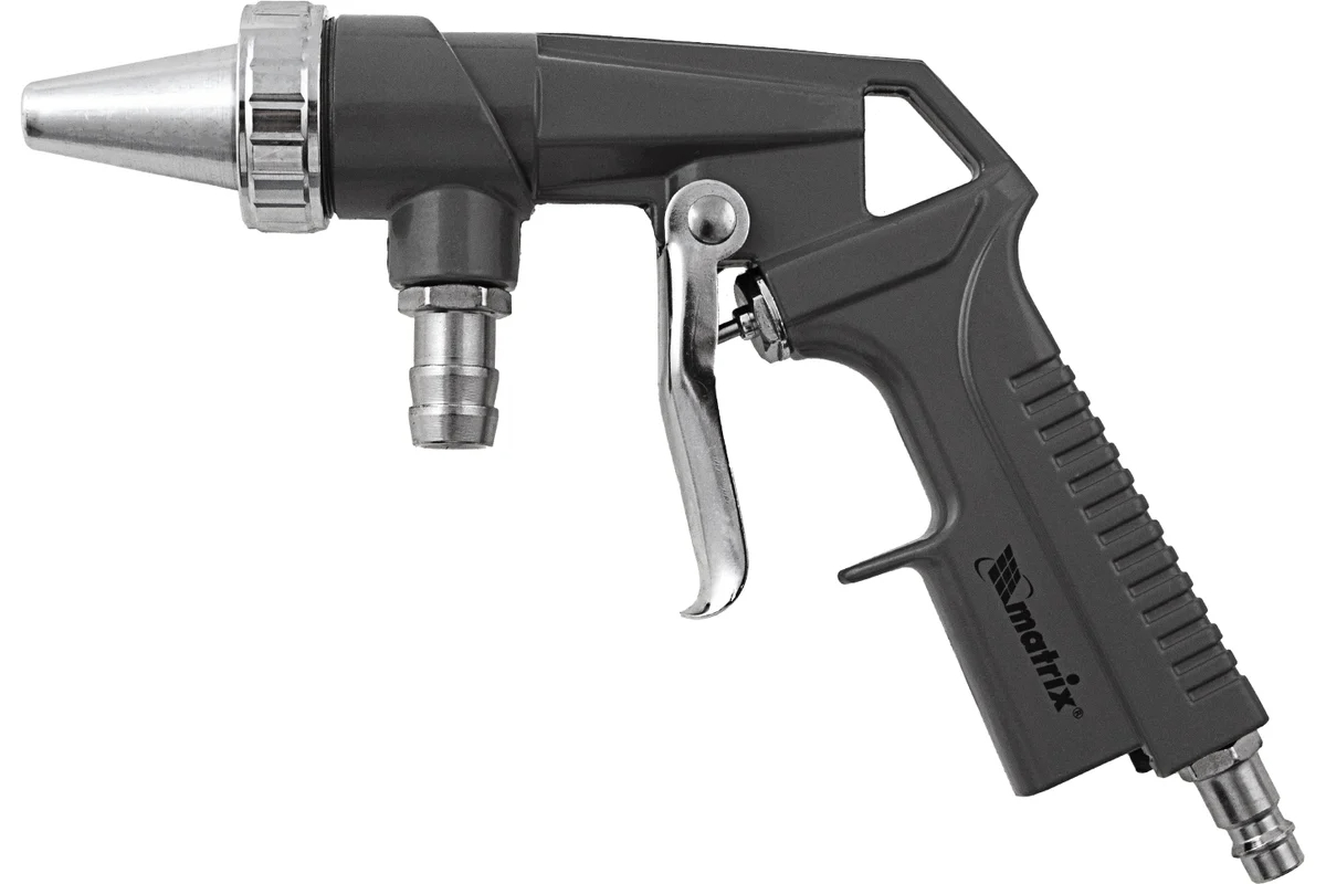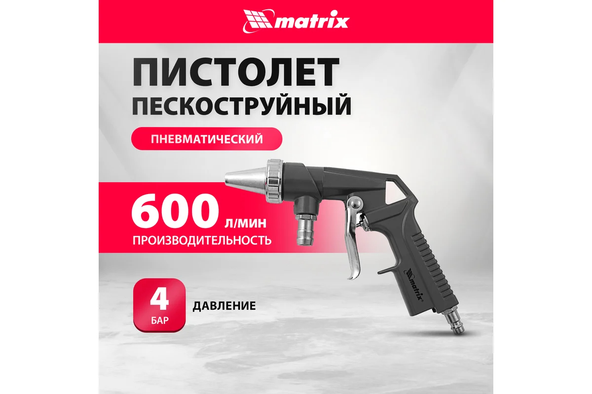 Пескоструйный пистолет со шлангом MATRIX 57328 предназначен для очистки поверхности от грязи, ржавчины, краски, стойких загрязнений. Для работы применяется промытый кварцевый песок или специальная абразивная смесь. Диаметр сопла составляет 6 мм. Пескоструйный пистолет Matrix 57328 поможет быстро и эффективно очистить кузов автомобиля от краски и ржавчины, заготовку после сварки от окалин, бетонную стену от грязи, а еще отшлифовать поверхность перед декорированием. Взвесь абразива смешивается с воздушным потоком в отдельной емкости, затем подается в пескоструй под давлением 4 бара. Это позволяет обрабатывать большие поверхности. Производительность – до 600 л/мин.