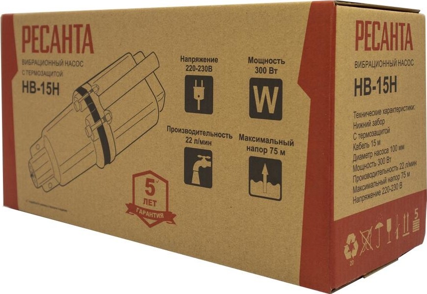 Вибрационный насос Ресанта НВ-15Н мощностью 300 Вт предназначен для бытового использования в условиях отсутствия центрального водоснабжения. Применяется для полива дачных участков из колодцев, резервуаров и других источников. Диаметр насоса 100 мм. Обеспечивает производительность 22 л/мин, максимальный напор на высоту до 75 м.