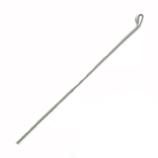 Металический стержень вставляется в подвес с зажимом одной стороной, а другой (с петлей) крепится к несущему потолку.